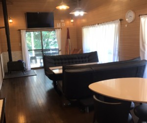 エアコン ダイニングテーブル ソファーベッド×2 TV 薪ストーブ Wi-Fi