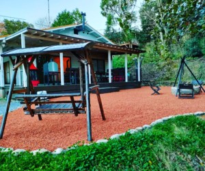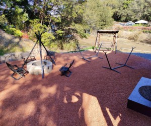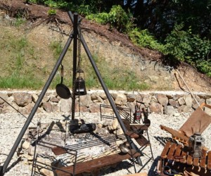 屋根付BBQスペース BBQ焜炉 ハンモック 焚き火スペース ドッグラン 屋根付きブランコ ダッチオーブン 薪割り体験